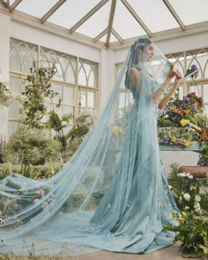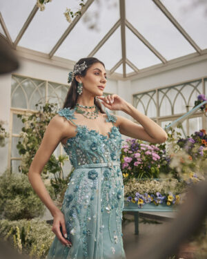 Powder Blue Corsetted 3D Floral Embellished Gown