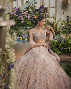 POWDER pink crystal embellished lehenga set