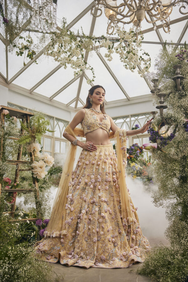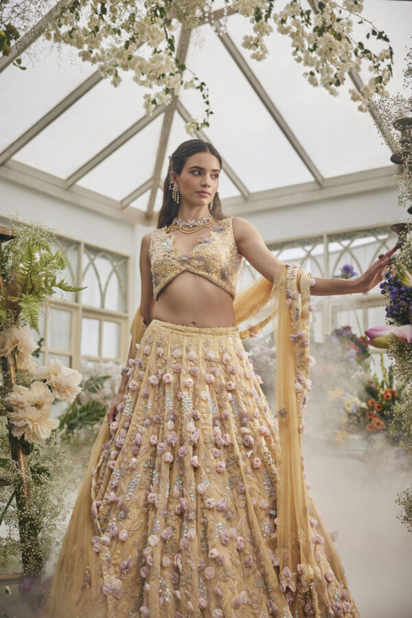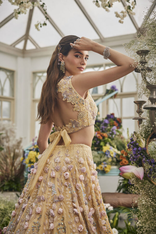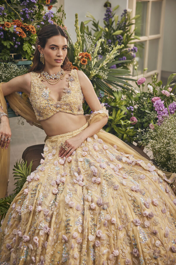 BS-51Lemon yellow 3D floral embellished lehenga set