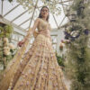 The embroidery is a rich mix of delicate threadwork, sequins, and bead detailing, covering the lehenga in a blooming pattern that shimmers with every movement. Thousands of hours and immense skill have gone into its making, with every inch touched by hand and heart.